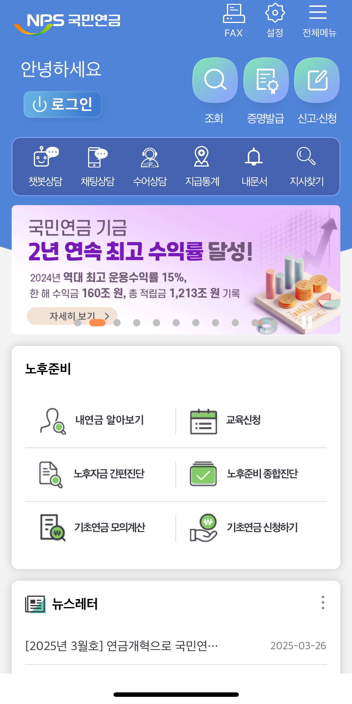01.내 곁에 국민연금 (NPS) 앱을 다운 받습니다.