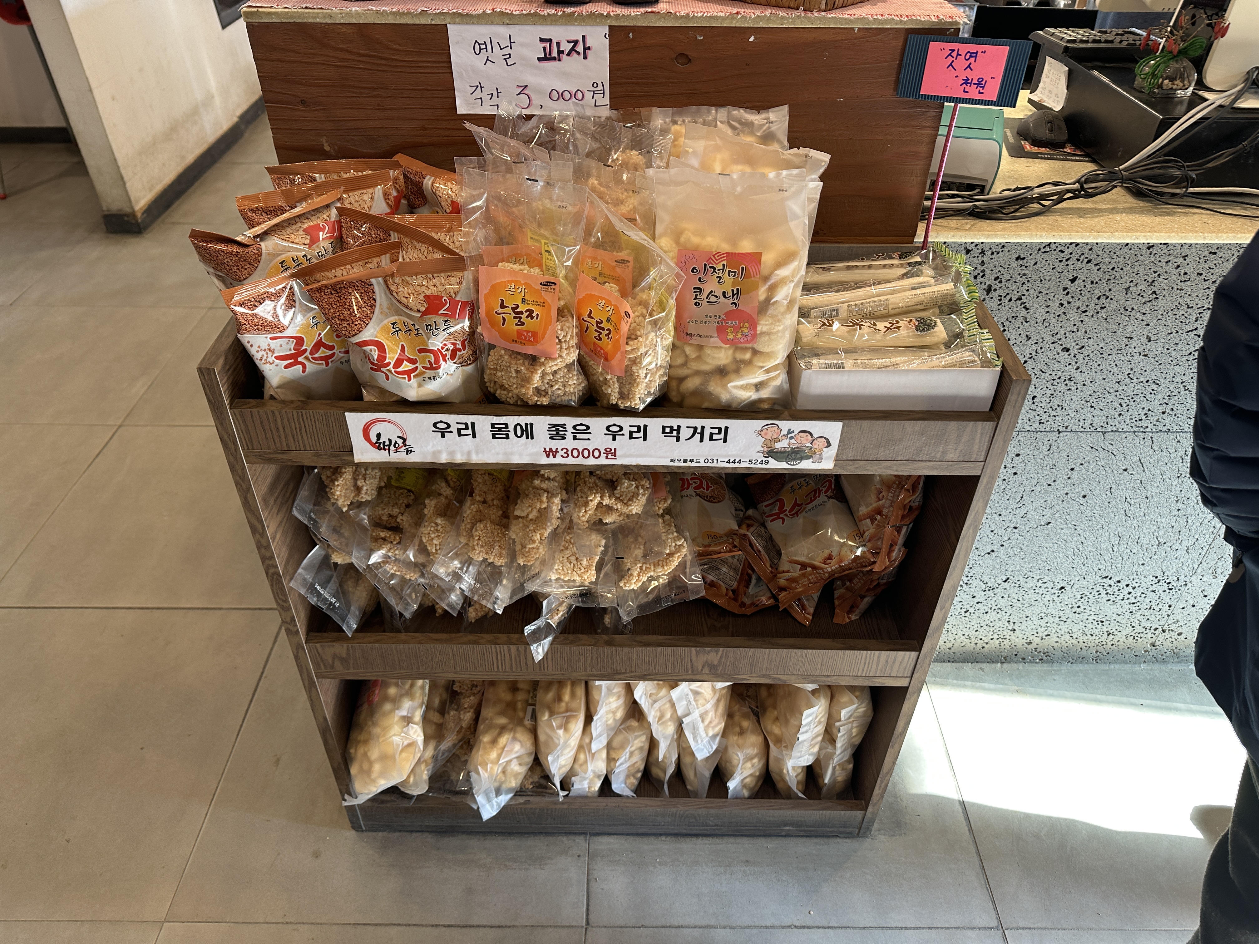 한켠에는 옛날과자 같은 것을 판매했어요.