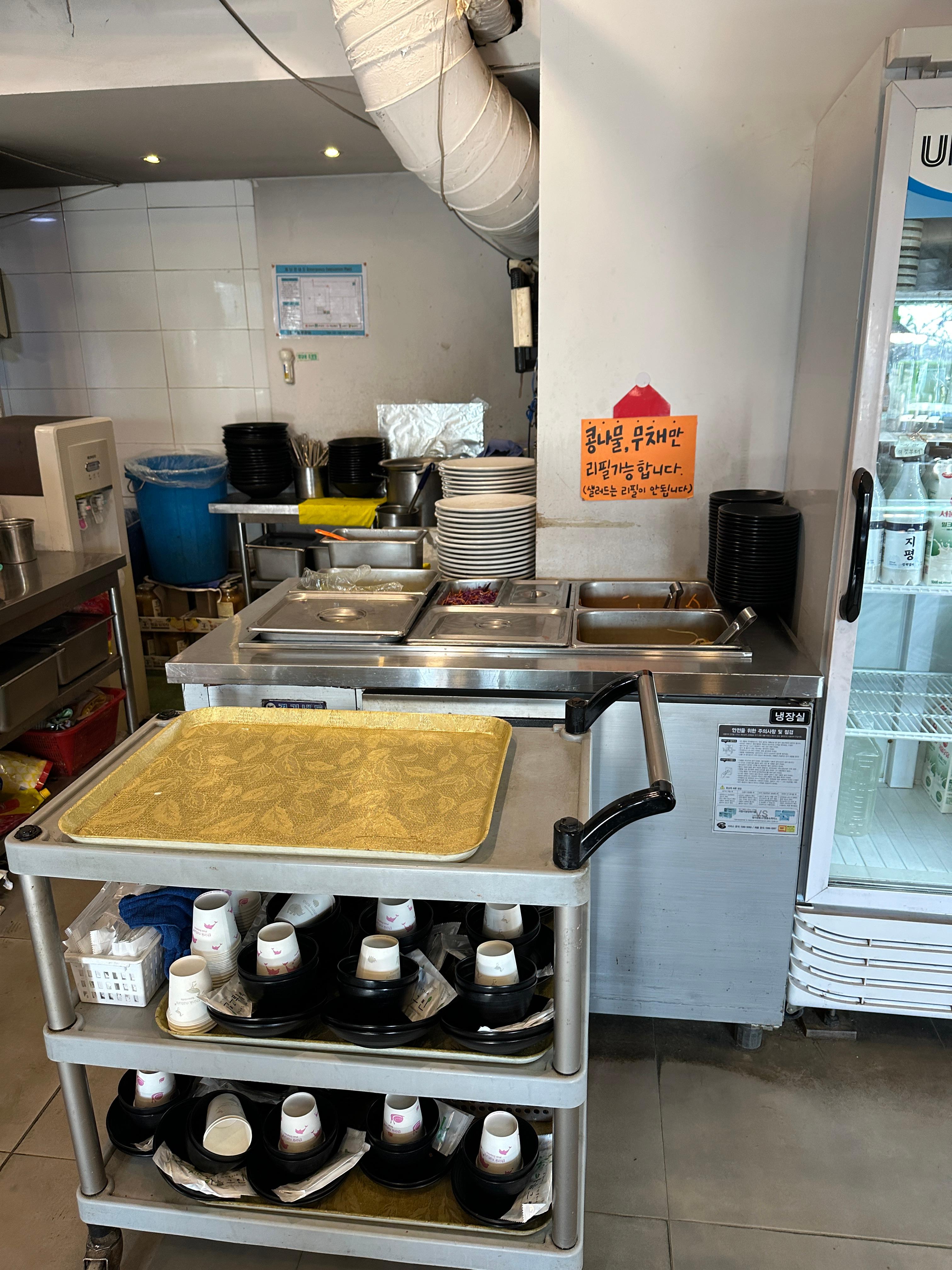 반찬은 셀프이며, 콩나물이랑 무채만 가능하다고 합니다.