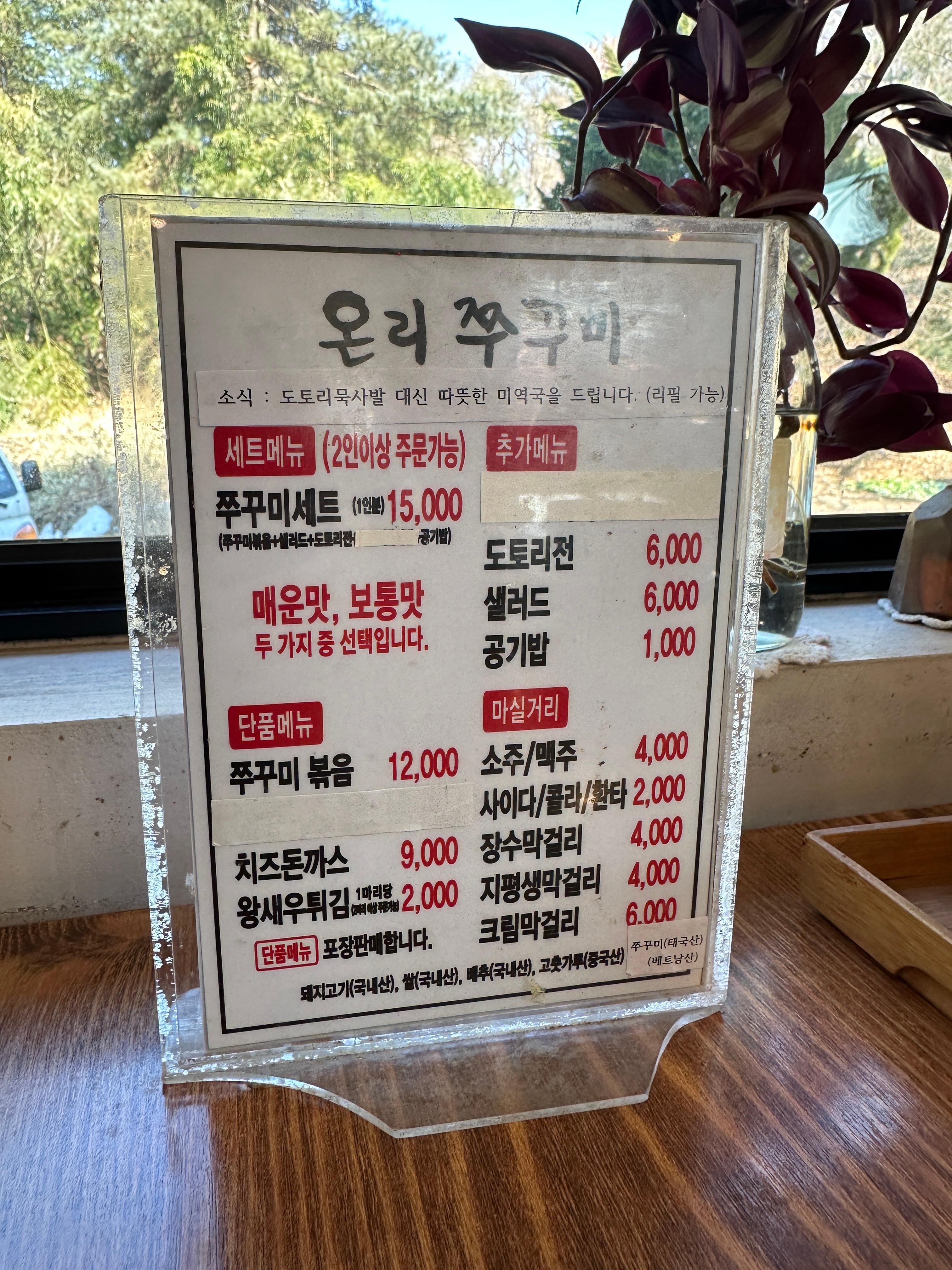 온리 쭈꾸미 이름처럼 쭈꾸미 세트가 메인 메뉴입니다.