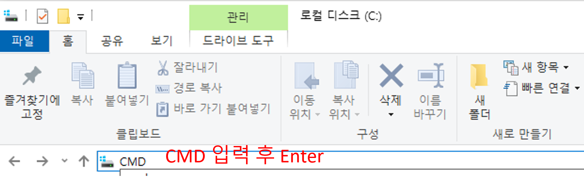 그러면 해당 경로에서 명령 프롬프트 창이 열립니다.