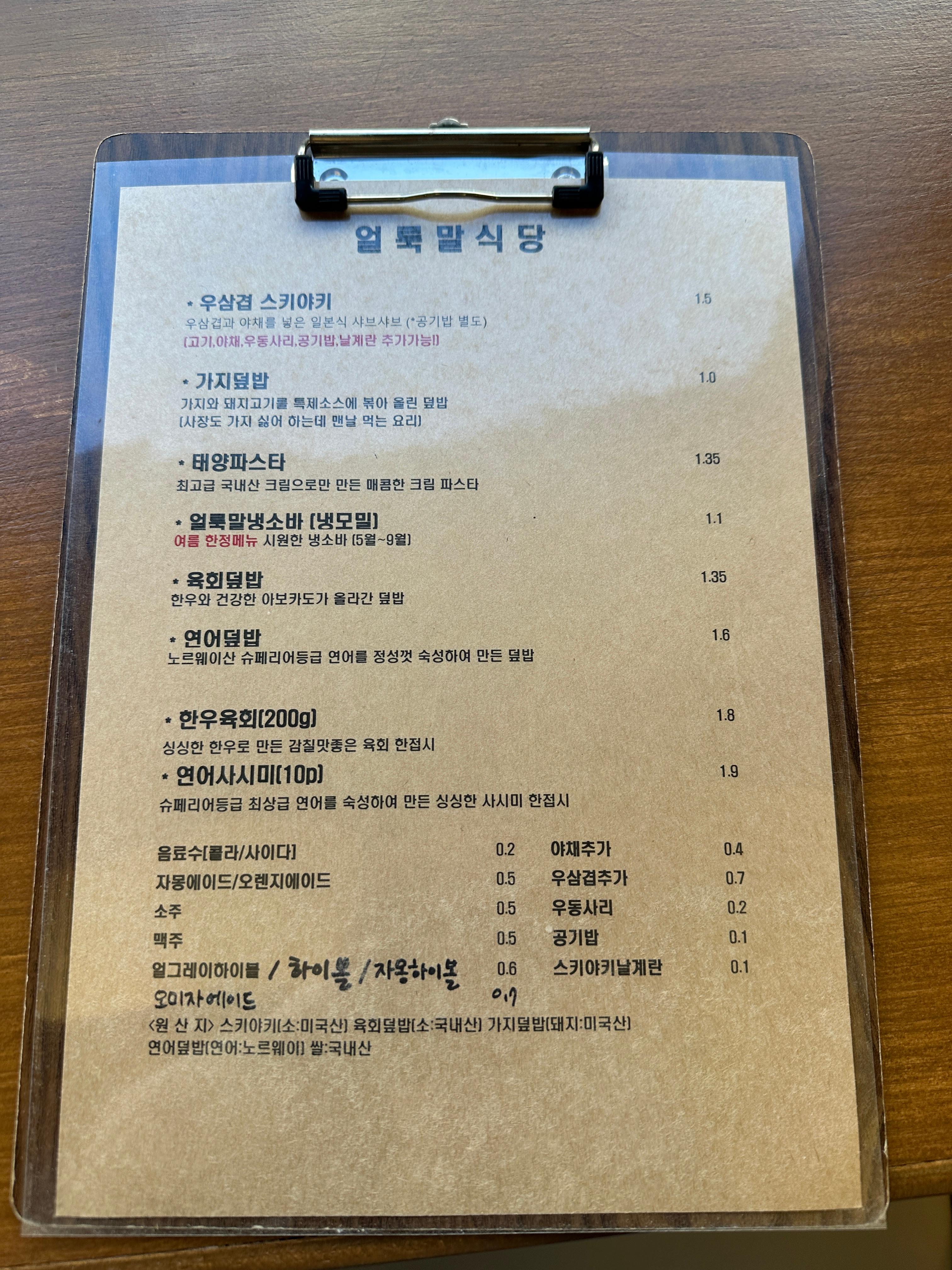 대표 메뉴로는 우삼겹스키야키, 가지덮밥, 태양파스타로 알고 있습니다!