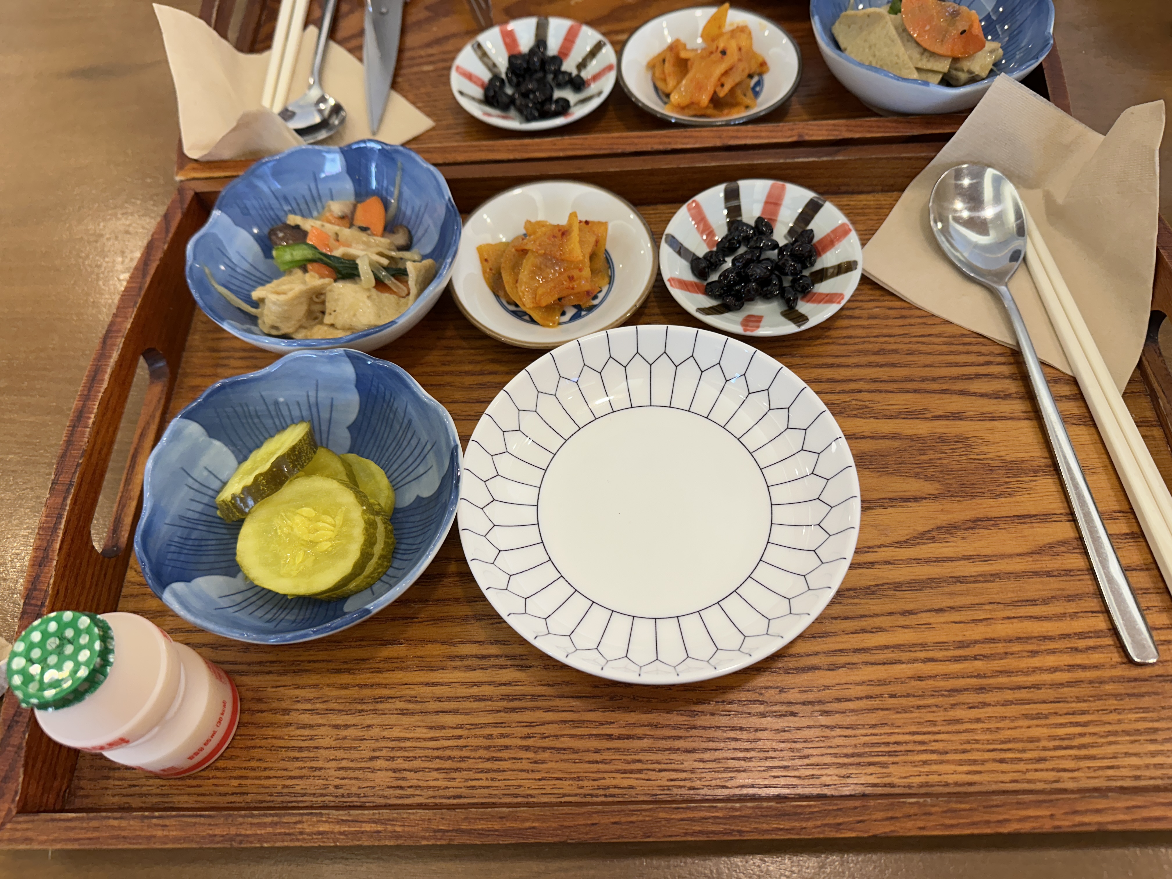 처음에 기본 반찬이랑 앞접시, 숟가락, 젓가락, 요구르트 이렇게 셋팅이 됩니다.