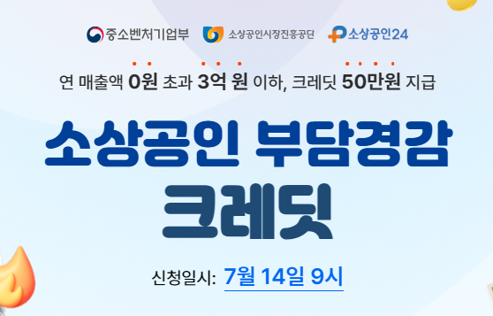 - 지원 방식: 소상공인 1인당 크레딧(포인트) 50만원을 지급