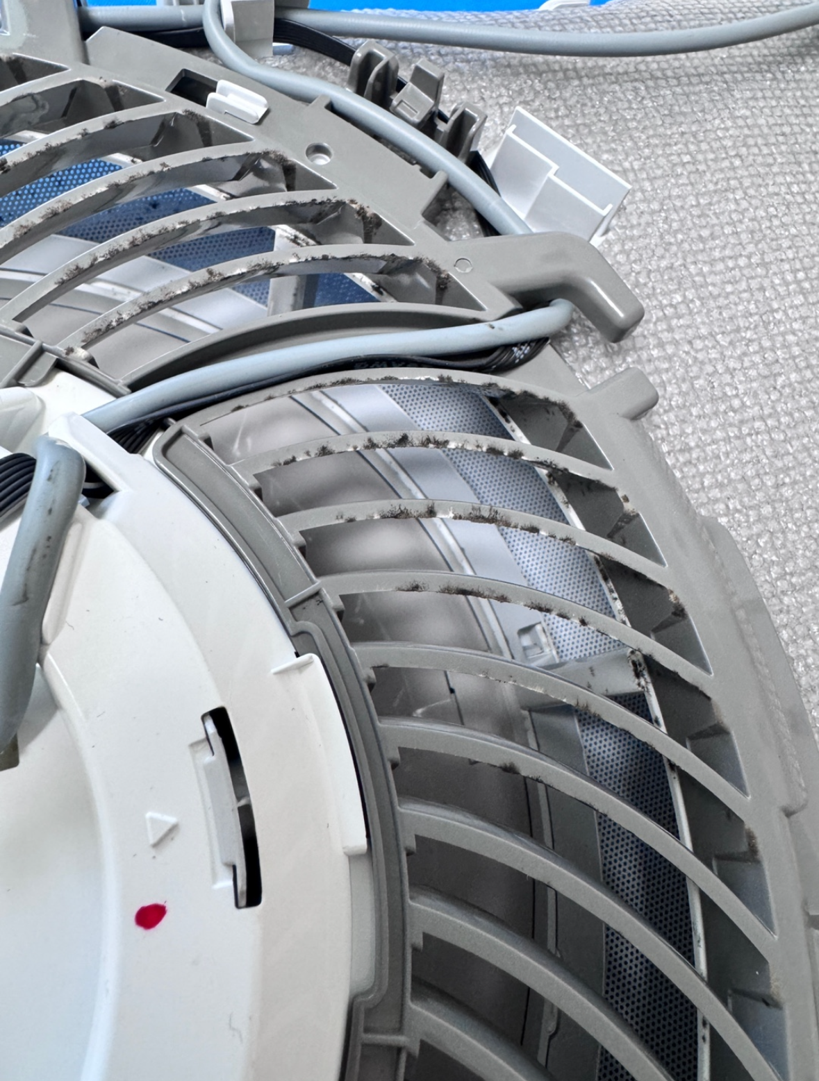 청소 전: 필터에 먼지 가득, 내부 곰팡이 육안 확인 가능