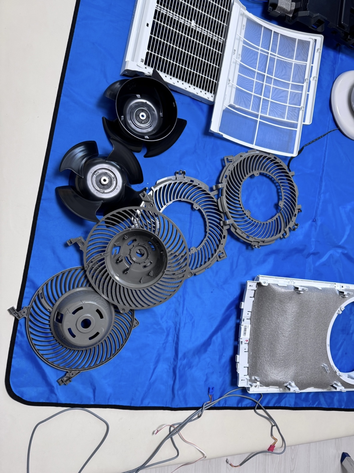 청소 후: 열교환기 반짝반짝, 송풍팬 완전 세척