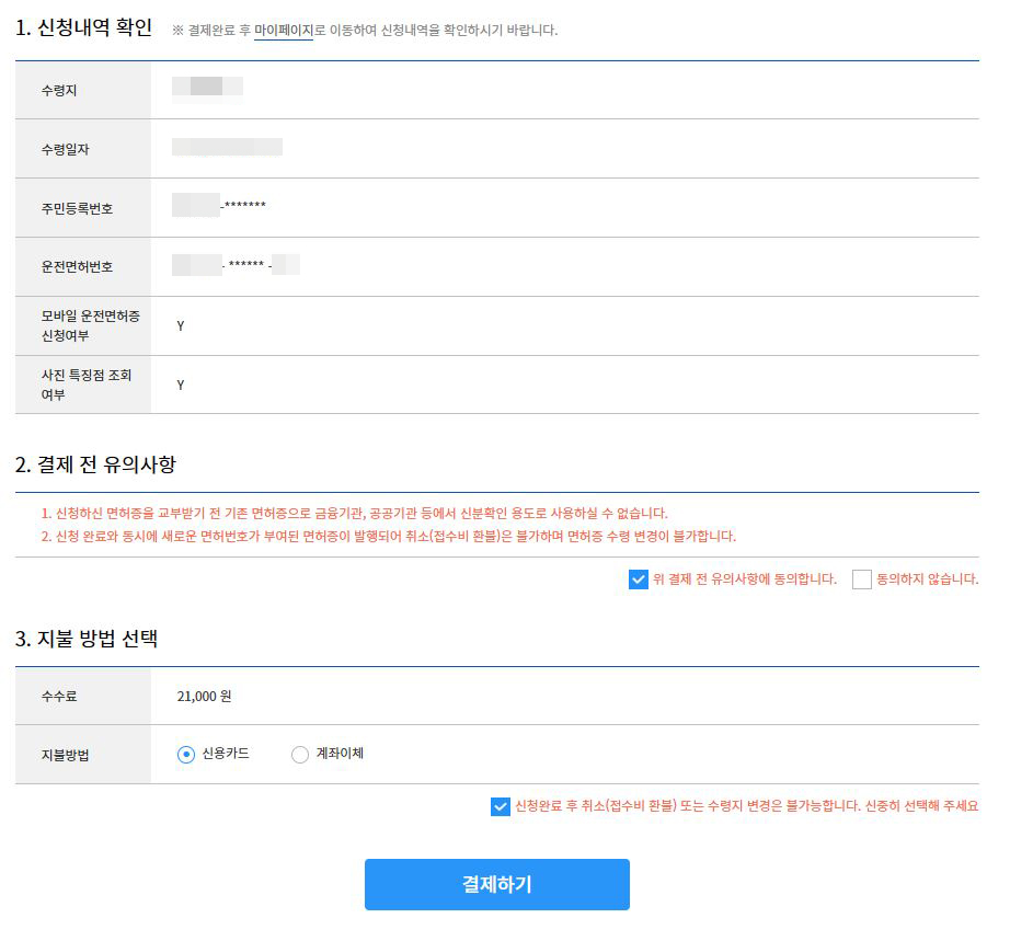 step.6_면허증 종류·수령지 ·날짜선택