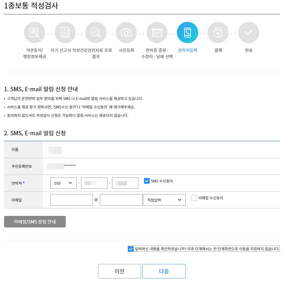 1종보통 적성검사 신청 이용약관에 동의합니다를 체크해줍니다.