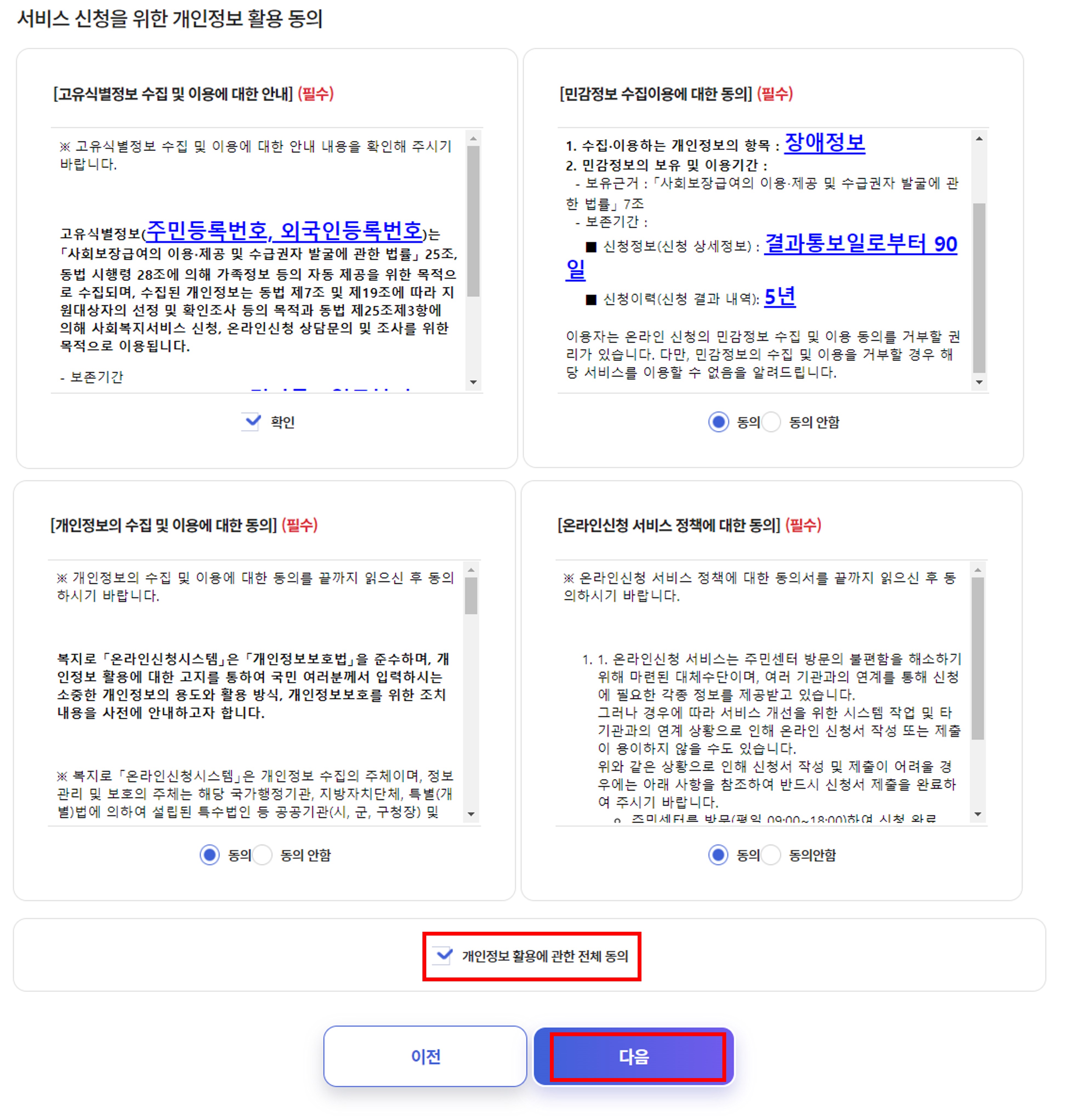 보육료 전환 개인정보 활용 동의