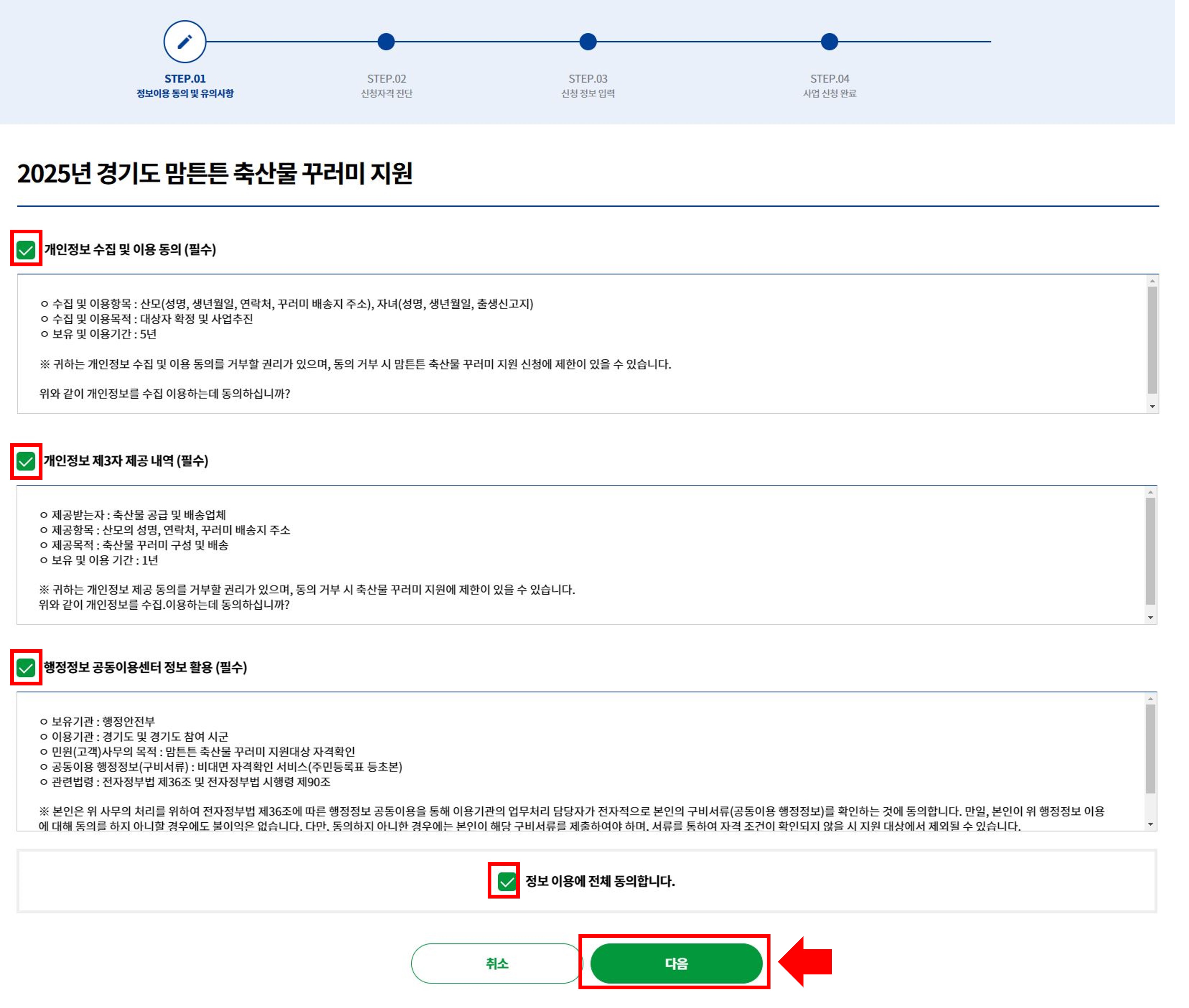 2025년 경기도 맘튼튼 축산물 꾸러미 신청 방법-정보이용동의 및 유의사항