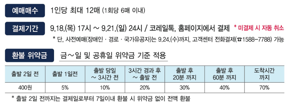 2025년 추석 KTX 예매 결제 기간 및 환불 위약금