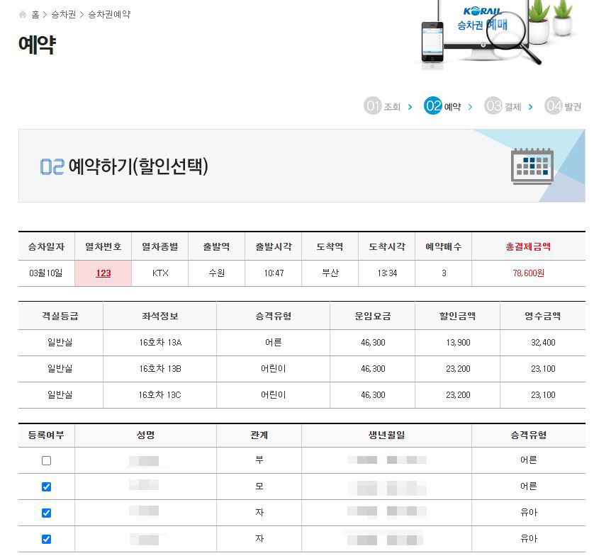 3. 코레일 KTX 다자녀 할인 예약 방법