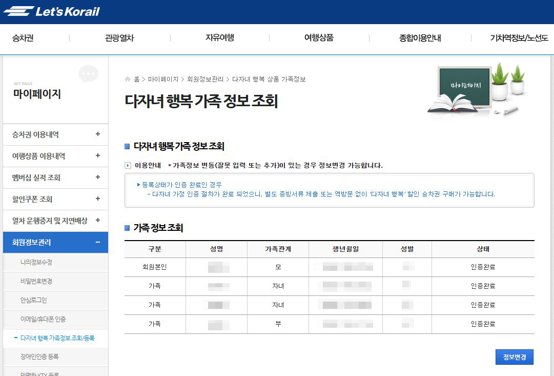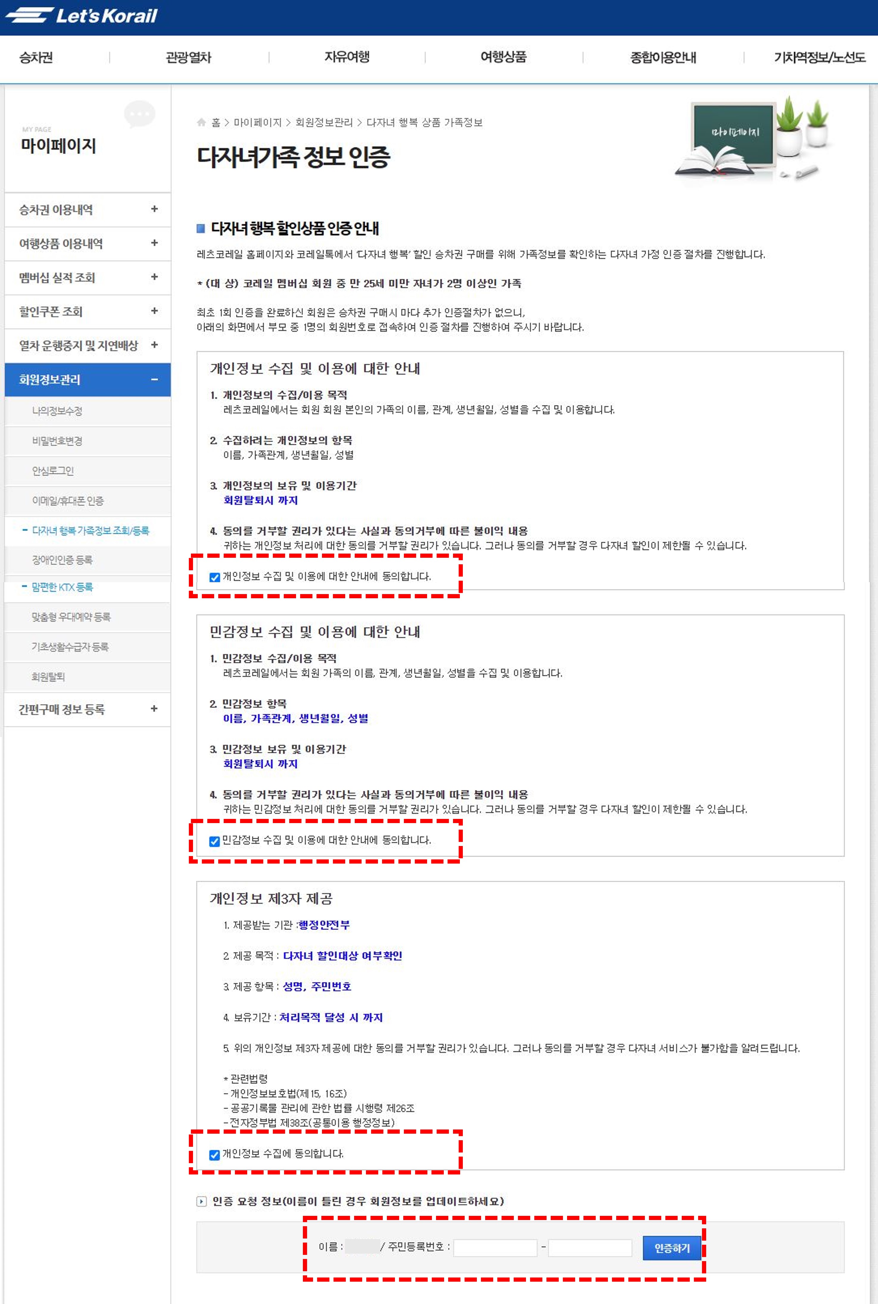 2. 코레일 KTX 다자녀 할인 등록 방법