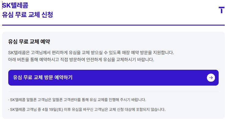 SKT는 고객 피해를 최소화하기 위해 일정 기간 동안 유심을 무상으로 교체해주는 정책을 시행하고 있습니다. 유심 무료 교체는 SKT 고객 누구나 신청 가능하며, 온라인과 오프라인 모두에서 간편하게 예약할 수 있습니다.