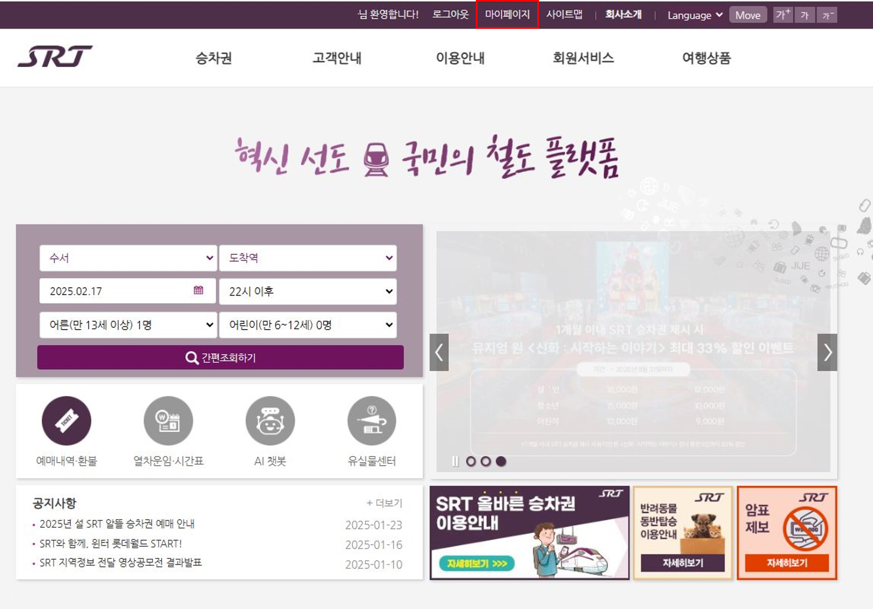 SRT다자녀 인증을 했으면 기차표 예매하는 방법에 대해서 설명드리겠습니다.