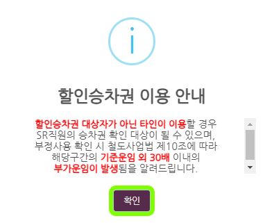 06. 할인승차권 이용 안내의 "확인"을 클릭하세요